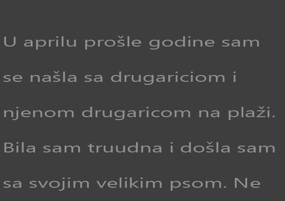 U aprilu prošle godine sam se našla sa drugariciom i njenom drugaricom na plaži. Bila sam truudna i došla sam sa svojim velikim psom. Ne dugo potom su dosle tri… Read more »